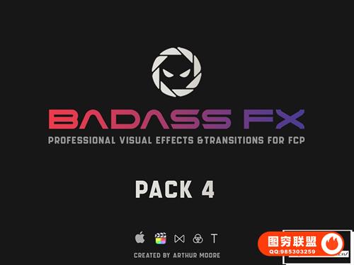 [FCPX插件]37个油管网红 Arthur Moore 棱镜光效分屏色彩分离转场视觉特效工具包 BadAss FX 4