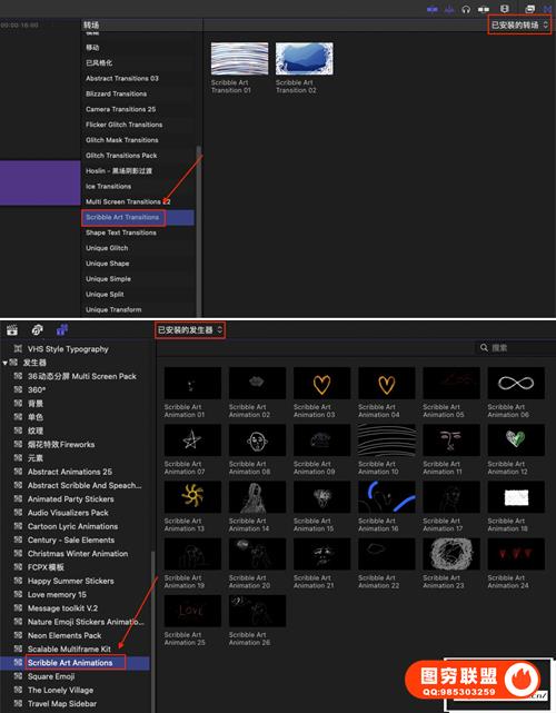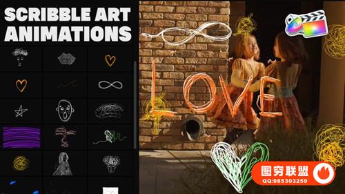 图穷联 » [FCPX插件]28个手绘卡通抽象线条图形动画 Scribble Art Animatio