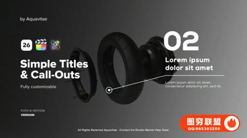 在这个包中您会发现26个简单的标题和标注,可以轻松自定义。更改、持续时间、文本、字体设置、元素颜色、大小、元素位置、目标设计等等。