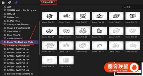 图穷联 » [FCPX插件]20组综艺卡通搞笑贴纸花字标题动画 Comic Titles Black