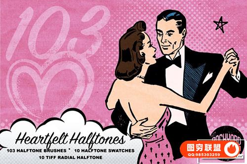 [AI笔刷]100+粗犷复古锥形渐变半色调纹理Illustrator色板笔刷 Heartfelt Halftone Vector Brushes