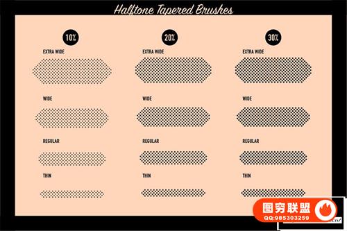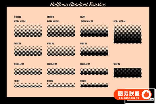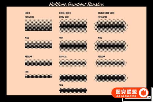 图穷联 » [AI笔刷]100+粗犷复古锥形渐变半色调纹理Illustrator色板笔刷 Heartf