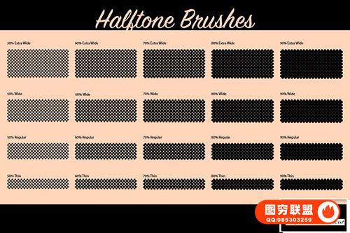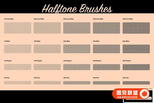 Illustrator 半色调画笔和色板 超过 100 种用于 Illustrator 的矢量半色调图案画笔。让使用半色调变得快速、轻松、有趣!