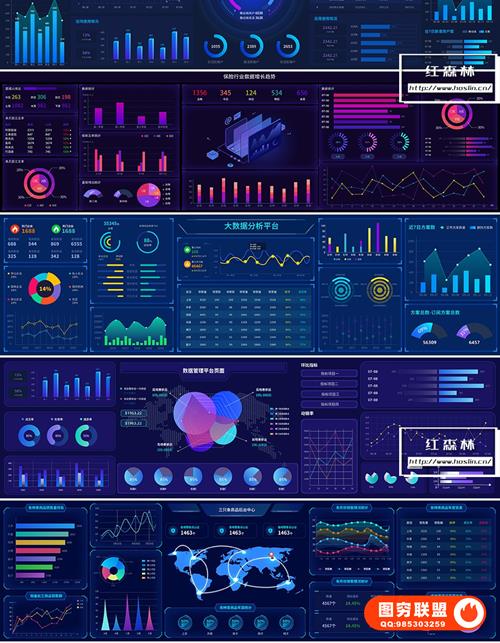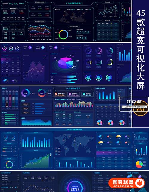 图穷联 » [AI模板]45款超宽矢量大屏可视化大数据展示科技后台UI界面AI格式统计分析模板