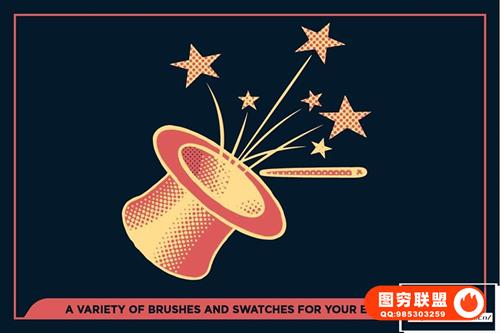 图穷联 » [AI笔刷]78种黑暗魔法锥形渐变半色调纹理Illustrator色板笔刷 Retro S