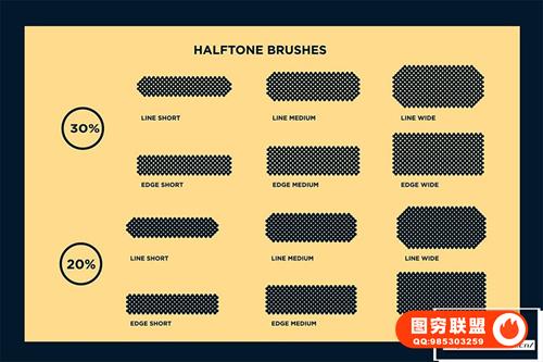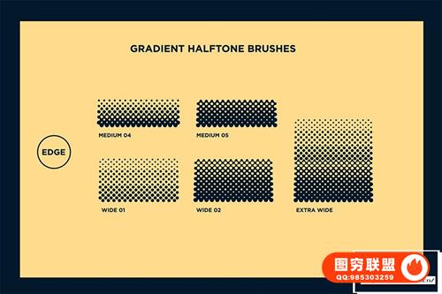它们包括半色调画笔、半色调图案和无缝半色调色板。