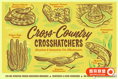[AI笔刷]216种自然交叉阴影线条重叠效果Illustrator色板笔刷 Retro Supply – Cross-Country Crosshatchers