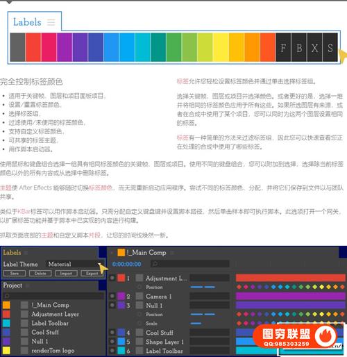 [AE脚本]图层关键帧项目面板标签颜色批量管理工具 Labels V4.0