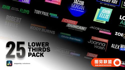 图穷联 » [达芬奇模板]25种现代文字标题字幕条动画 25 Lower Thirds - Title