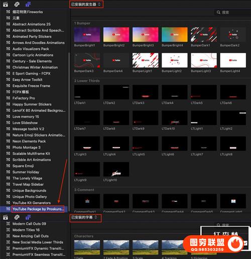 [FCPX插件]323个社交媒体文字标题图形元素视频包装动画 YTB Essential Library