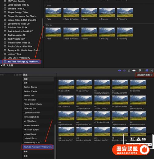[FCPX插件]323个社交媒体文字标题图形元素视频包装动画 YTB Essential