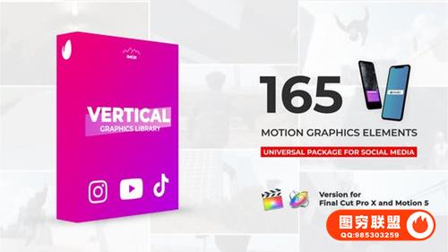 图穷联 » [FCPX插件]165个社交媒体竖屏排版设计图形标题动画 Vertical Graphic