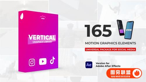 [AE模板]165个社交媒体竖屏排版设计图形标题动画 Vertical Graphics Pack