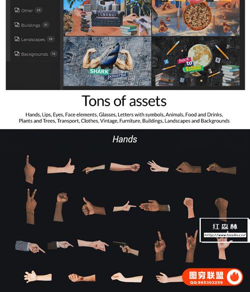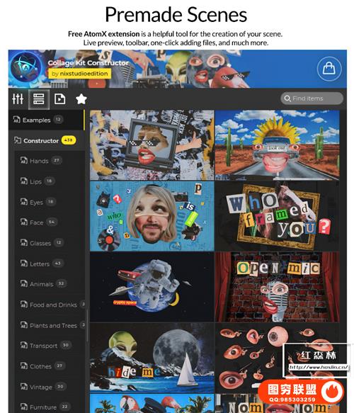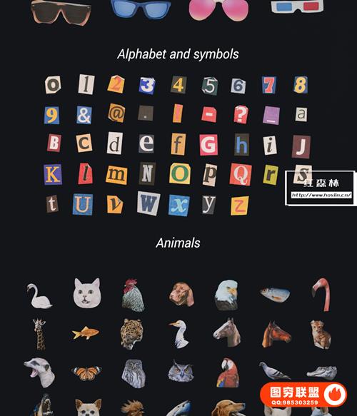 图穷联 » [AE脚本]398种创意复古眼睛嘴巴头发手势动物汽车物品贴纸组合动画 Collage Ki