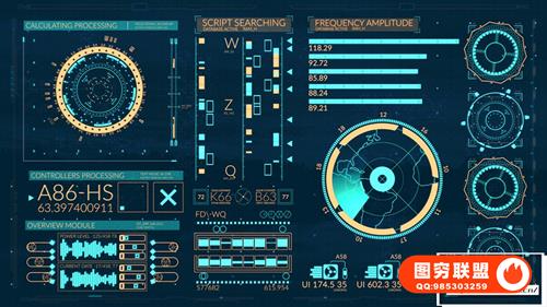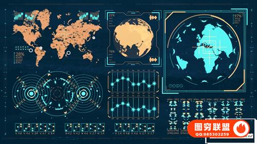 图穷联 » [PR模板]300个科技感UI界面图形元素动画 Fusion HUD Pack