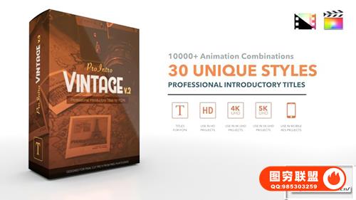 图穷联 » [FCPX插件]30种复古文字标题排版设计动画 ProIntro Vintage V2