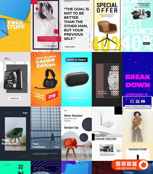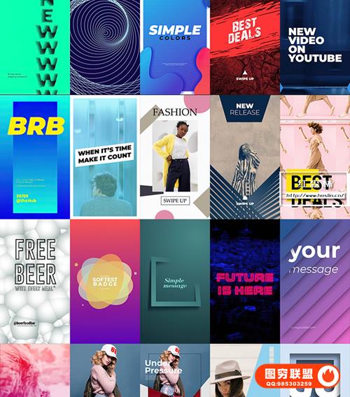 图穷联 » [AE模板]240个社交媒体竖屏海报封面图文排版设计动画 INS Stories and