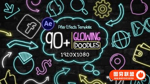 图穷联 » [AE模板]90种手绘涂鸦霓虹发光运动图形动画 90+ Glowing Doodles P