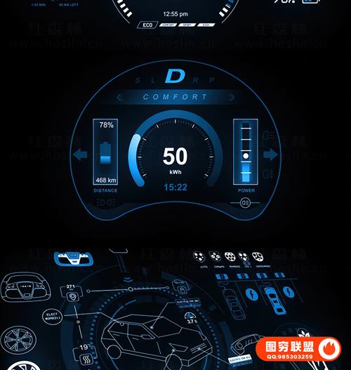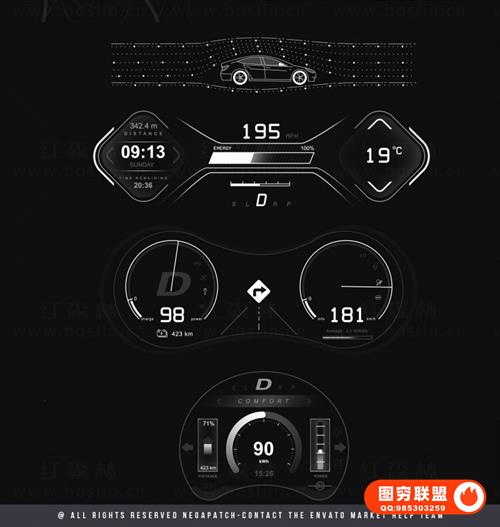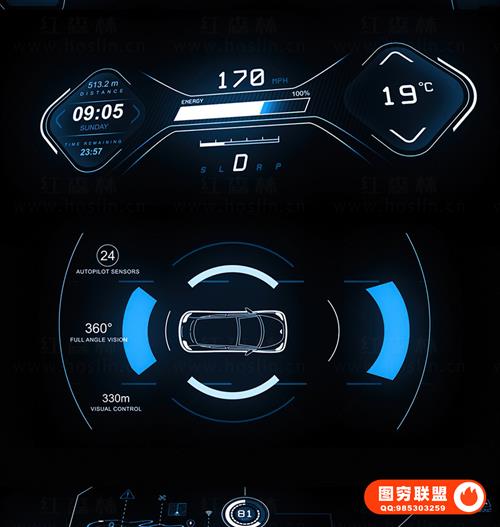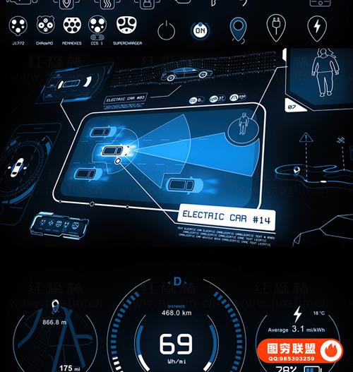 图穷联 » [AE模板]200种未来数字科技感电动汽车UI界面图形动画 Electric Car HU