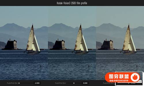 推/拉模拟:每张胶片的 3 个曝光样本和 3 个单独的配置文件 – 正常、曝光不足 (–2 Ev) 和曝光过度 (+2 Ev),可通过专用控制平滑调节