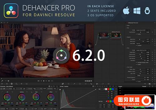 Dehancer Pro 是用于 DaVinci Resolve 中类似电影色彩分级和电影效果的OFX插件套件。数十种具有真正模拟控制的真实摄影和电影胶片。胶片颗粒、光效和光晕效果来完成外观。完全原生支持 ACES 管道。可以在达芬奇软件中给画面制作一些胶片边框,灼烧光效,噪点刮痕等复古视觉特效。