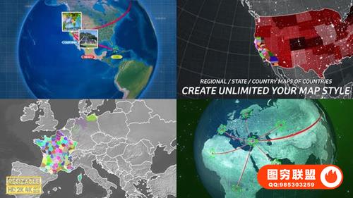 Globe Map Pro Kit 旨在轻松快速地在世界地图上创建令人印象深刻的视频。