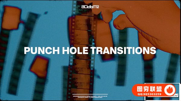 [4K视频素材]30种时尚复古打孔胶卷故障纹理特效叠加转场过渡MOV视频素材 Acidbite – Punch Hole Transitions