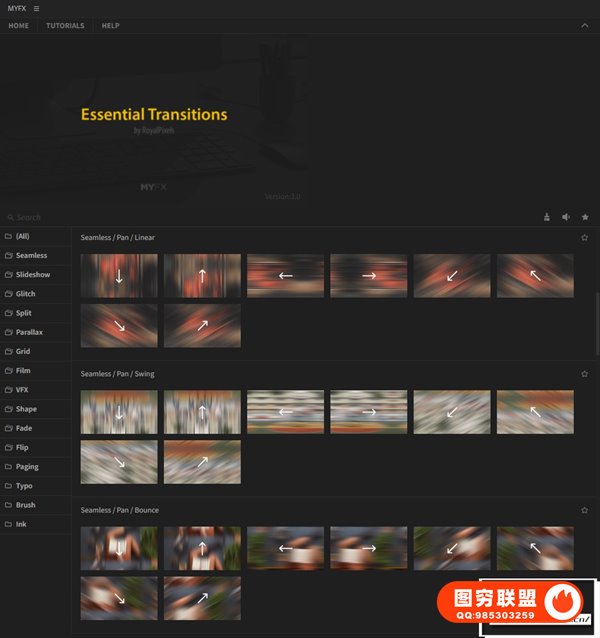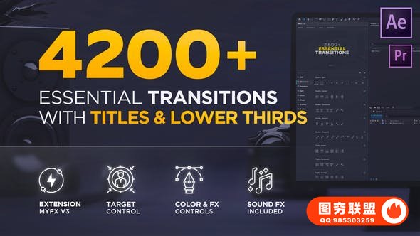 Transitions v4.1 MYFX更新到V4.1版本,转场预设增至4200个,文字标题220个。如摄像机运动图形遮罩故障干扰分割水墨光效无缝转场等预设。通过使用这些必不可少的多用途转场,轻松使您的视频动感十足。只需选择您喜欢的预设,然后MYFX脚本扩展中只需点击一下即可即可加入项目合成中发挥其魔力!可更改每个过渡的颜色和其他效果。基本的过渡预设非常适合幻灯片,开场,预告片,广播,音乐视频,电影,纪录片,演示文稿,电影,促销等等!