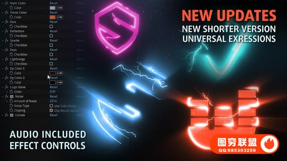 MultiFx徽标显示这是一个令人印象深刻的抽象电影风格动画。您可以使用任何徽标。模板中使用CONTROLS层,您可以选择要打开或关闭的元素:闪电、光线、火花……甚至是带有反射的地板。只需单击即可打开或关闭。音频包含在您的下载和项目中。无需额外插件。明亮的16位颜色、发光和效果!快速渲染,包含视频教程。