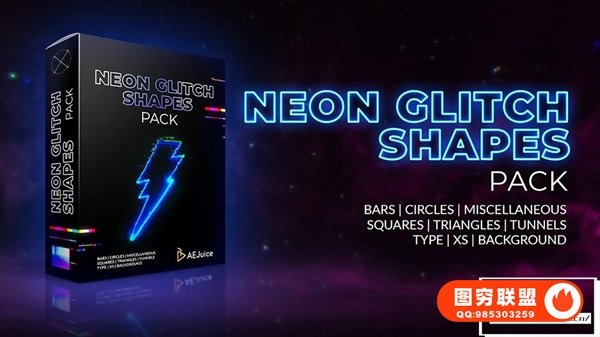 图穷联 » [AE/PR模板/视频素材]72个赛博朋克霓虹发光图形毛刺故障闪烁4K动画 Neon Gl