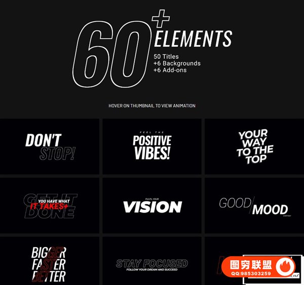 mTitle Hype 是一套非常有活力的标题排版动画,它们现代、动态且引人注目。他们的动作设计和文字风格相结合,可以保证与您的听众交流。50个文字标题排版动画,6个小元素动画,6个线条背景动画。文字内容可修改支持中文输入,大小位置旋转颜色等属性也可以随意修改。