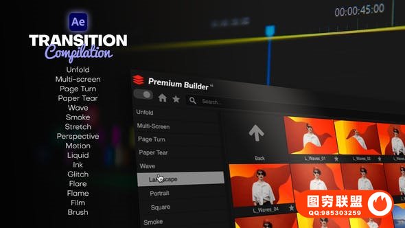 Transition Compilation 是您创建酷炫、时尚和吸引人的视频转场所需的一切。此包包括16个过渡类别: 展开、多屏幕、翻页、撕纸、波浪、烟雾、拉伸、透视、运动、液体、墨水、毛刺、耀斑、火焰和胶片刷,具有3种纵横比:横向、垂直和方形。 创建令人惊叹的城市介绍、街头视频、幻灯片、商业广告、宣传片、徽标开场白、预告片、宣传视频、时尚视频、商业广告、音乐视频、婚礼、网络视频、体育视频等等!无需额外的软件或插件,即可为任何视频演示添加专业和动态的外观。提供两种使用方式:AE脚本和AE模板。其中脚本是可视化窗口预览,需要哪种效果点击加载即可使用。