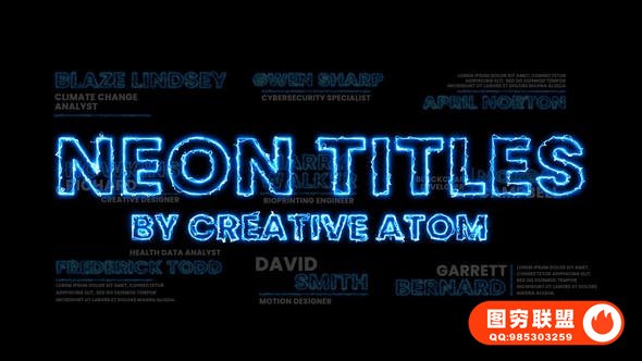 霓虹发光电流描边文字标题动画 Neon Titles,易于使用,支持中文输入,支持4K。