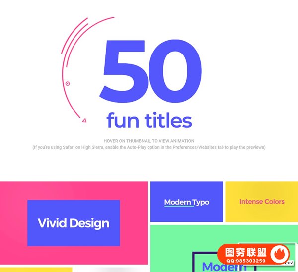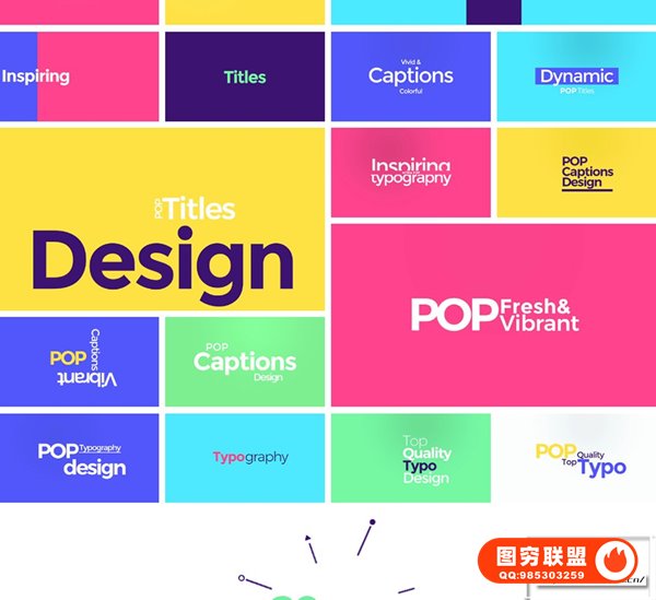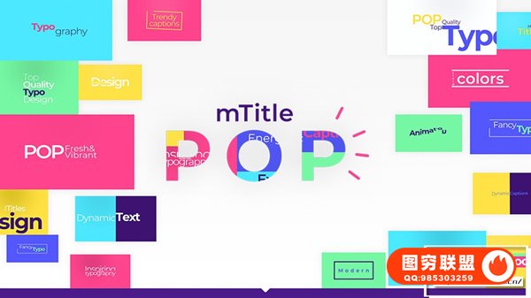 mTitle POP包含50种动感炫彩时尚有趣文字标题动画 + 20种小元素图形动画。自带带进入/退出动画(可关闭),支持4K;可自定义修改文字内容,支持中文和英文输入,可调整字体,大小,位置,间距,颜色,等属性,背景覆盖控制:透明背景,纯色背景等。