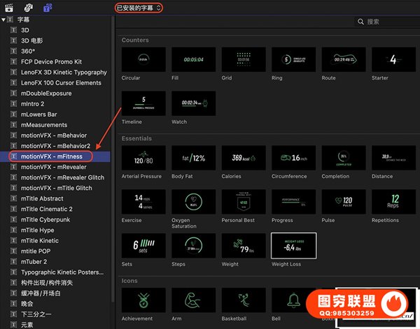图穷联 » [FCPX插件]106个活力动感体育健身训练图形数据标题动画 motionVFX -mFi