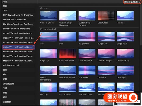 图穷联 » [FCPX插件]69种电影划痕噪点扭曲变形拉伸视频转场过渡预设 motionVFX -mT