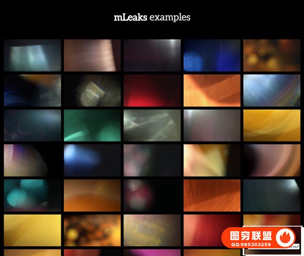 mLeaks 拥有50组高质量的2K视频素材,可用于任何合成软件和非编软件中,支持任意的混合和复合模式。它们能为你的视频画面增加观赏性和镜头感,给你的后期带来更多的乐趣。