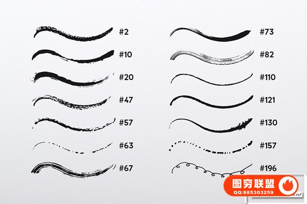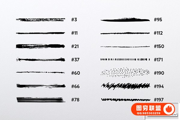 图穷联 » [Ai笔刷]201支手绘插画铅笔记号笔水彩书法笔木炭粉笔绘画效果Ai矢量笔刷 Illust