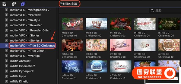 图穷联 » [FCPX插件]15个圣诞节日主题3D三维文字标题动画预设 motionVFX -mTit