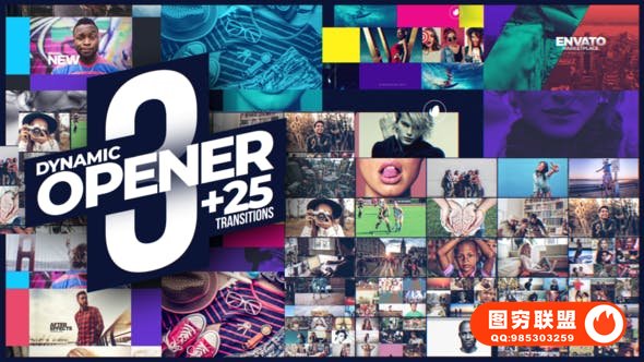 图穷联 » [AE模板]现代时尚动态图形网格布局图文快闪展示转场动画 Dynamic Openers