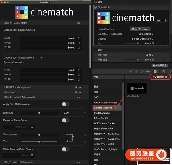 图穷联 » [FCPX插件]摄像机色彩空间匹配调色FCPX插件 CineMatch v1.12b