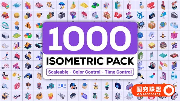 图穷联 » [AE模板]1000个日常生活等距图标简约动画 1000+ Isometric Icons