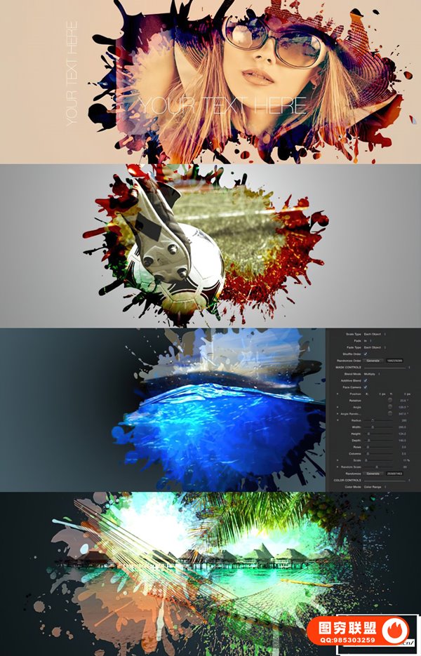 Pixel Film Studios ProPanel V3 有 40 多种新的液体媒体面板可供选择,您可以通过无尽的自定义选项将素材转换为彩色油漆飞溅。您可以控制位置,大小,旋转,随机,形态,背景颜色,添加文字等众多控制属性。文字效果可以随意修改中文/英文标题输入,使用简单,直接放置在视频素材轨道的上一个轨道即可制作视频遮罩。有了ProPanel Vol.3的效果,你一定会让人头转向。
