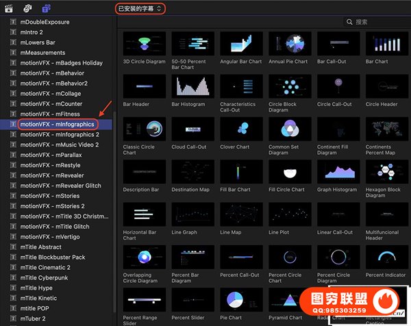 图穷联 » [FCPX插件]60种简约时尚科技感公司企业信息数据图表动画 motionVFX -mIn