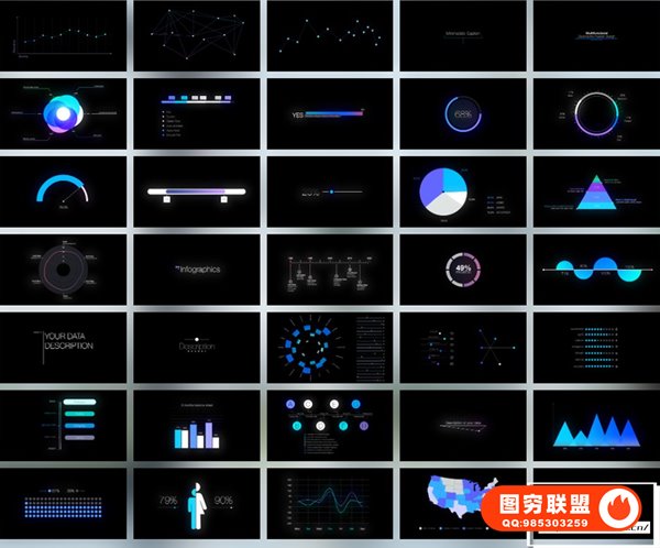 60种公司企业信息数据图表动画 mInfographics,可视化数据图形动画,风格多样,形式多样,适合不同用途。创建统计信息,以简单的图像表达复杂的想法,用漂亮的排版来描述细节。时尚现代美学设计,简单且易于使用,实现顺畅高效的工作流程。插件带进入/退出动画(可关闭)包括 柱状图,扇形图,走势图,百分比图表,点线图,比例图等。可自定义修改 位置,大小,旋转,颜色,数值等参数,这几十个动画可以自由的组合搭配制作出更多高级创意动画。其中英文介绍的地方可自定义修改文字,支持中文和英文输入,插件双击自动安装,使用操作简单直观。