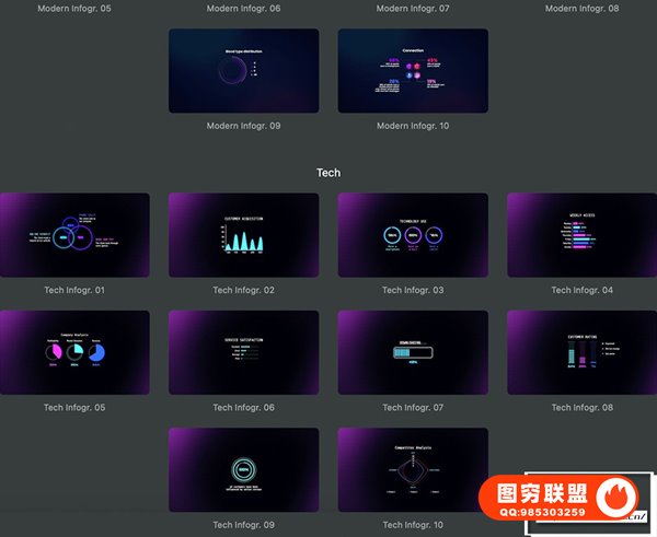 图穷联 » [FCPX插件]53个公司企业信息数据统计报表曲线柱状图饼状图动画 PremiumVFX