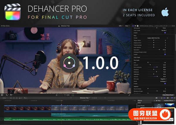 Dehancer Pro FCP 是用于Final Cut Pro 中类似电影色彩分级和电影效果的胶片模拟插件套件。数十种具有真正模拟控制的真实摄影和电影胶片。胶片颗粒、光效和光晕效果来完成外观。完全原生支持 ACES 管道。可以在达芬奇软件中给画面制作一些胶片边框,灼烧光效,噪点刮痕等复古视觉特效。