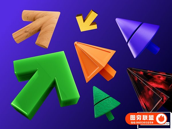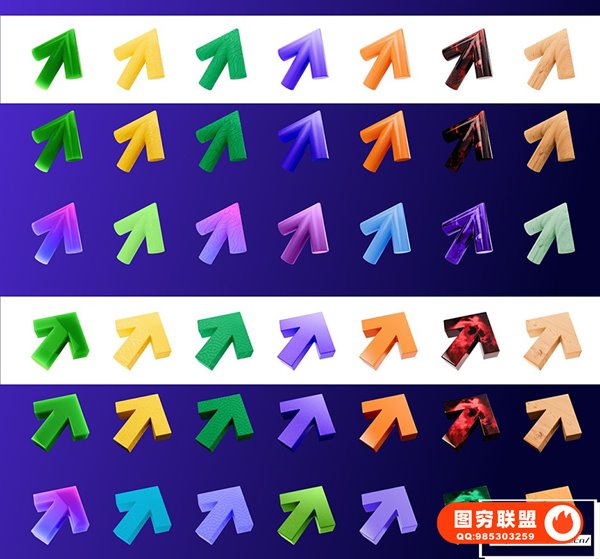 图穷联 » 56种3D立体箭头APP网站界面设计C4D图标模型设计UI素材 3D arrows, 4