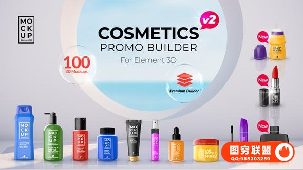 图穷联 » [AE模板 脚本]100种三维化妆产品包装瓶宣传展示动画 Cosmetics Promo