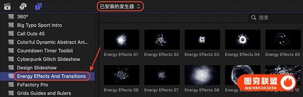 图穷联 » [FCPX插件]10种炫酷能量粒子爆炸转场特效动画 Energy Effects And